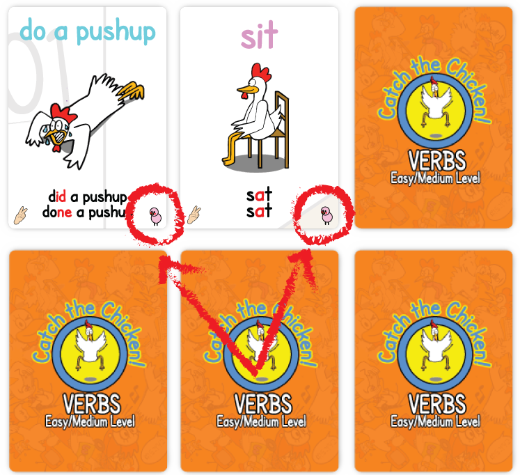 - For added challenge and consistency, colored chicks in the corner of each card can also trigger a slap if their colors match.