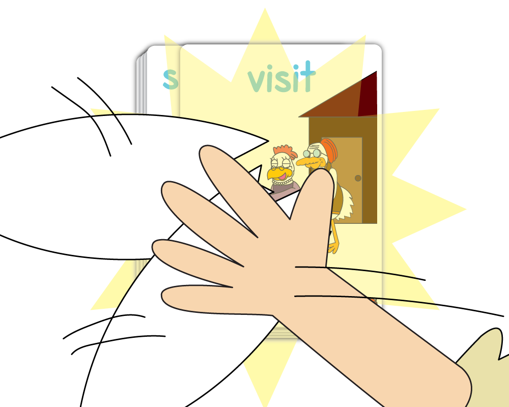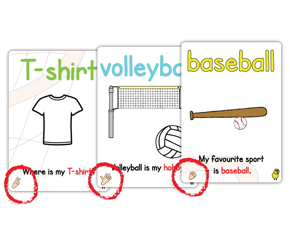 - The player who collects the cards must say the card’s vocabulary aloud (nouns, verbs, sight words) or ask the card’s question (for Q&A cards), with the next player or the teacher answering.