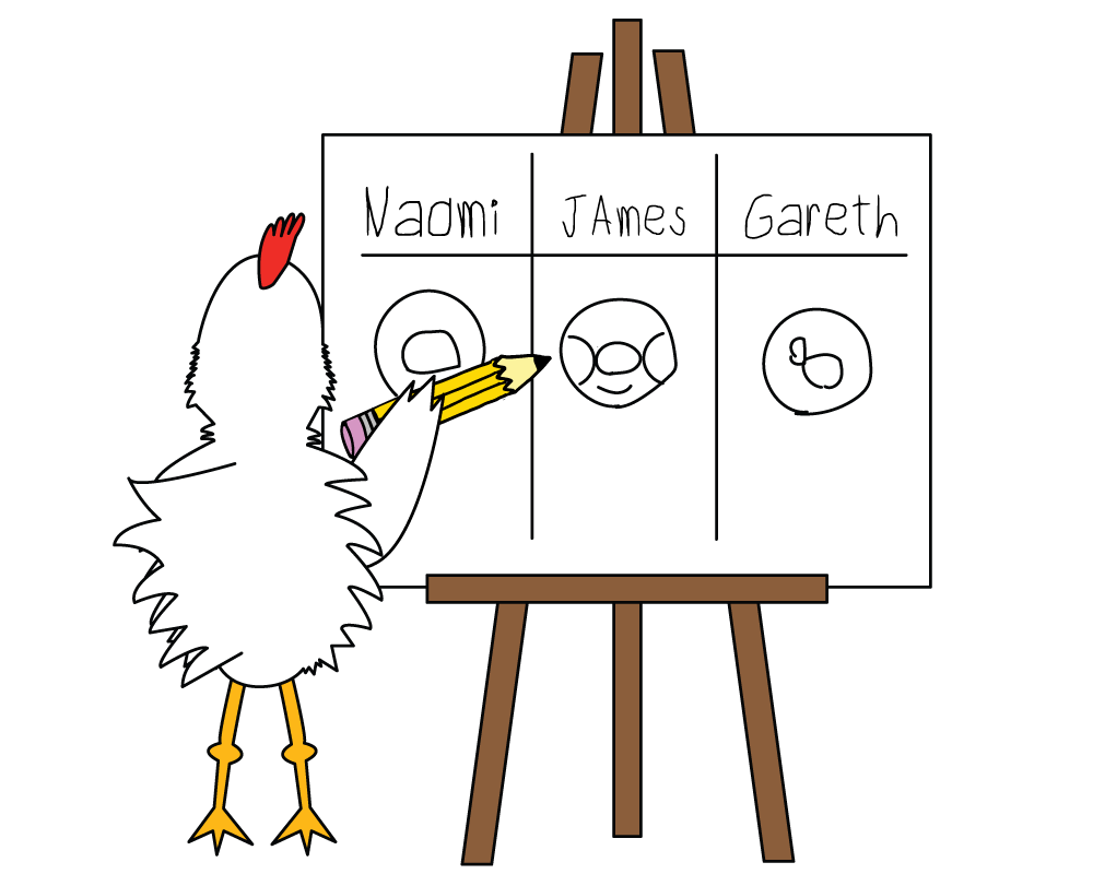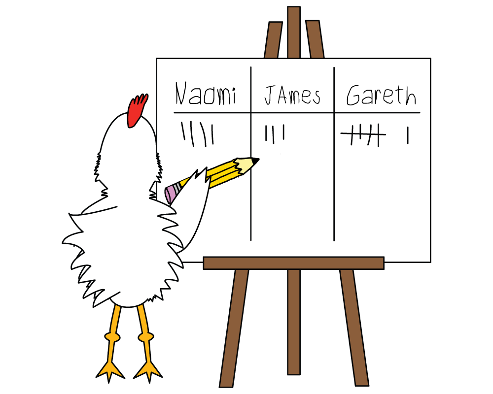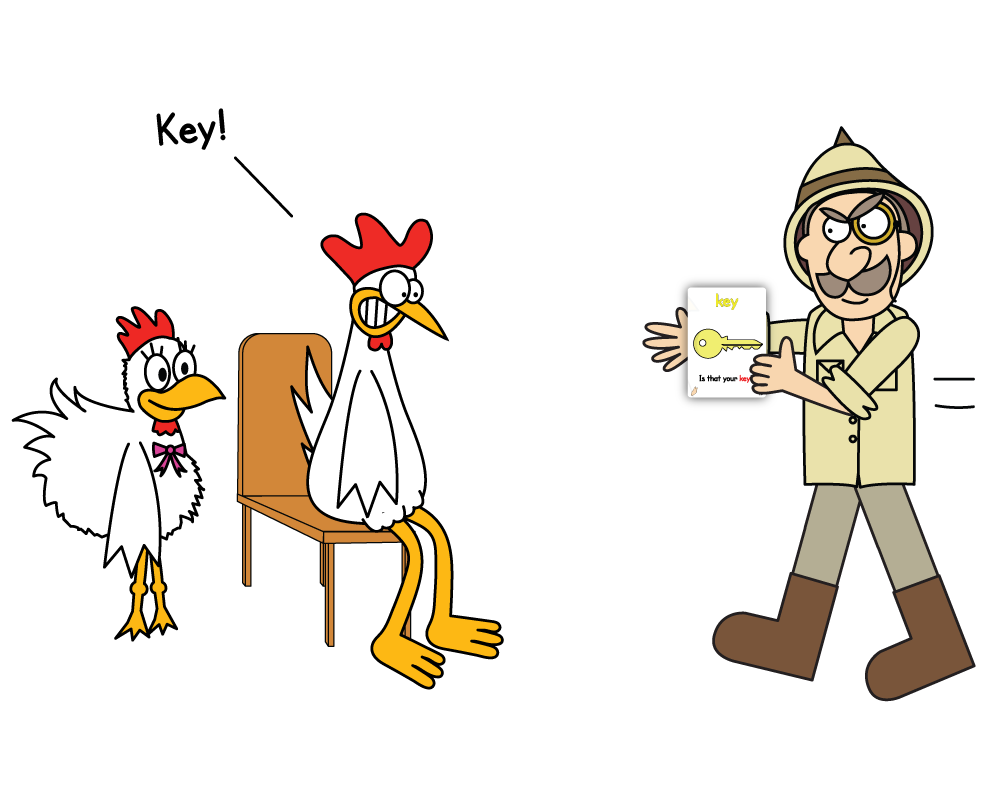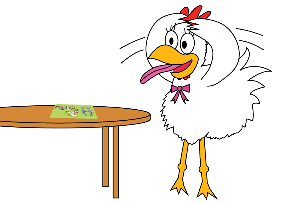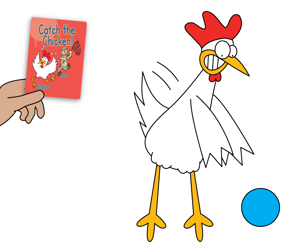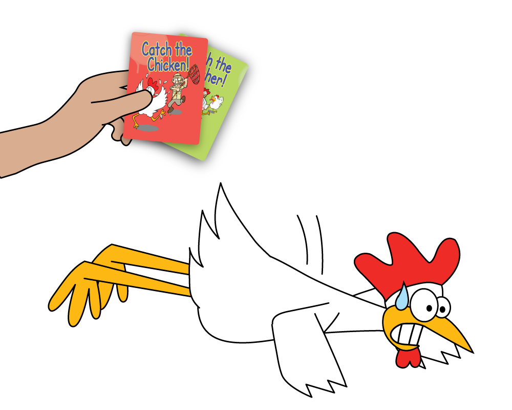 - Hold up a Catch the Chicken card and slowly walk towards the seated student, extending your hand towards them.