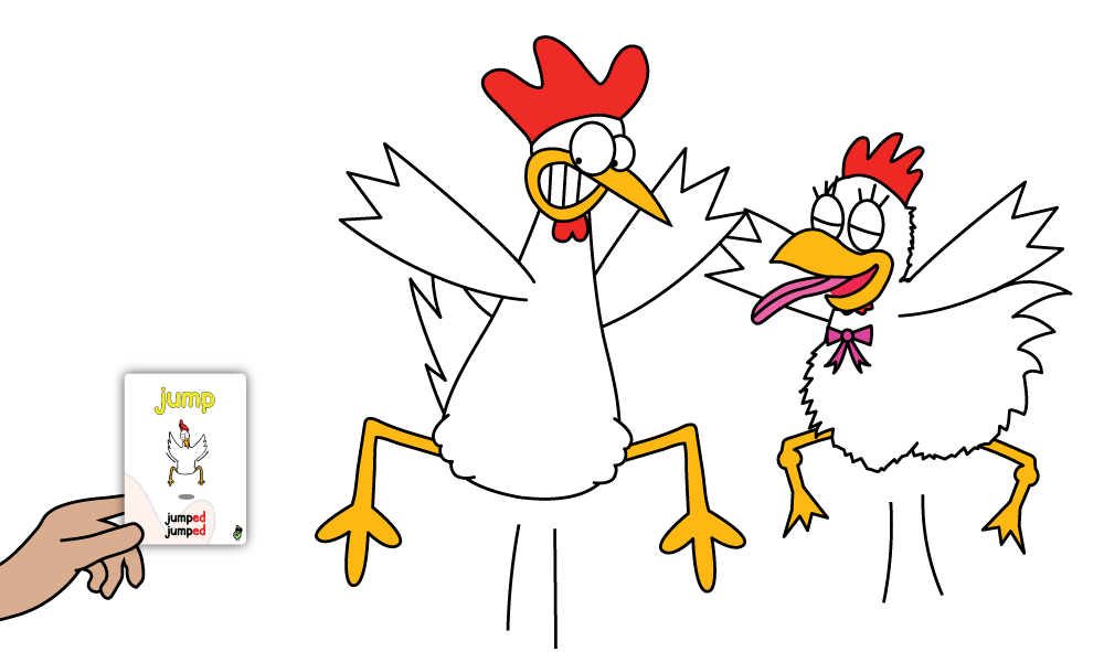- If the card is white (Q&A card), the player asks the question and the next student answers. For verb, noun, or sight word cards, the student says the vocabulary aloud.